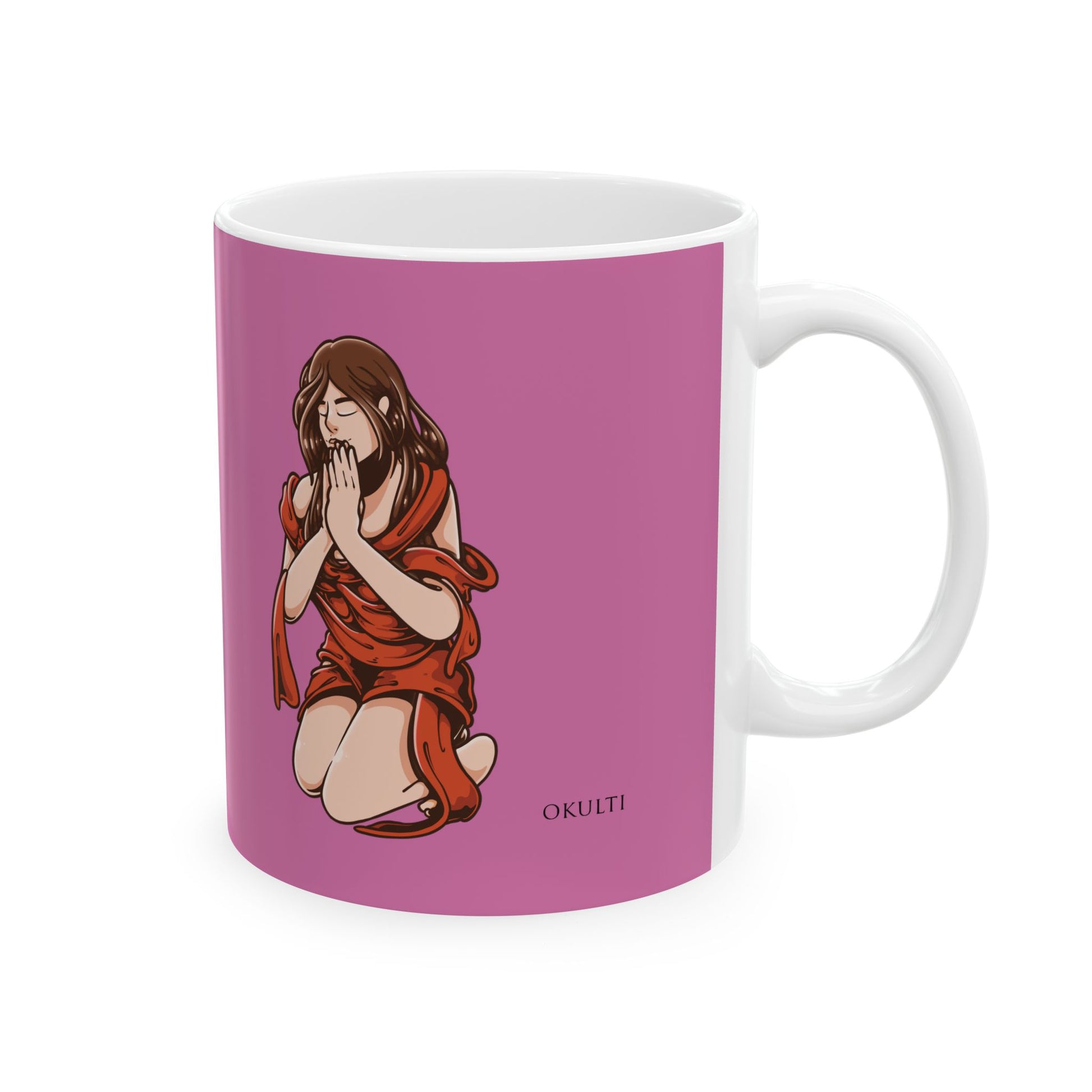 Thoughtfully Designed: Featuring a comfortable C-handle and a glossy finish, these mugs are as easy to hold as they are delightful to admire. Each one showcases an inspiring image of a woman kneeling in self-reflection, honoring herself and her thoughts.