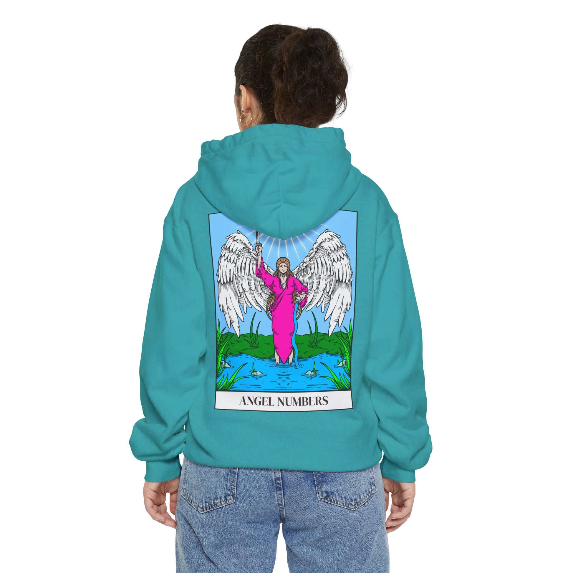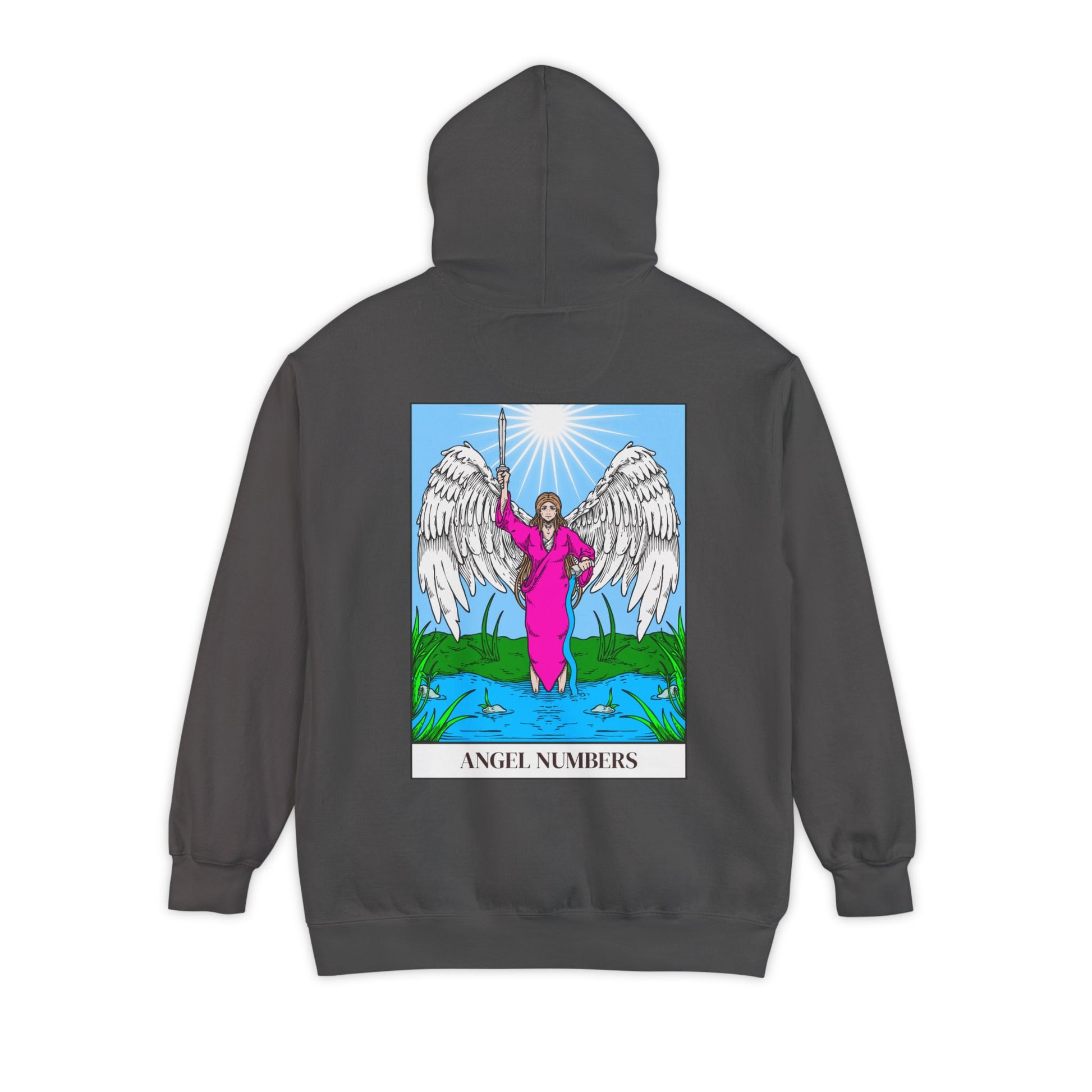 Each shirt in the collection showcases a prominent angel number with advice on the front. On the back, a beautiful angel is surrounded by intricate tarot-inspired artwork, merging the spiritual significance of angel numbers with the rich symbolism of tarot imagery and meaning.