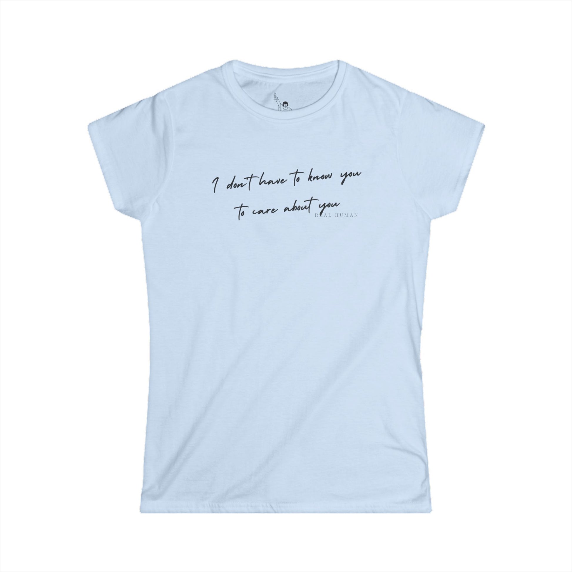 With the text "I don't care about how you look; I care about how you feel" across the front, our 'Real Human' collection is designed to touch your heart and soul.