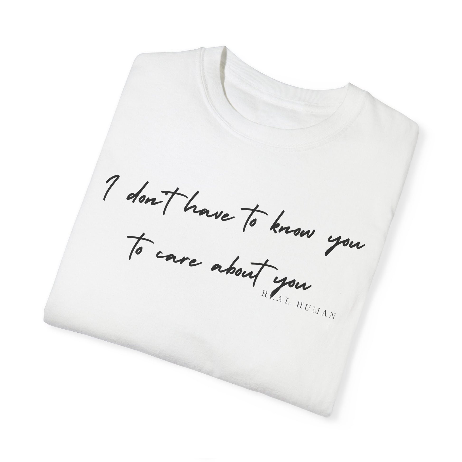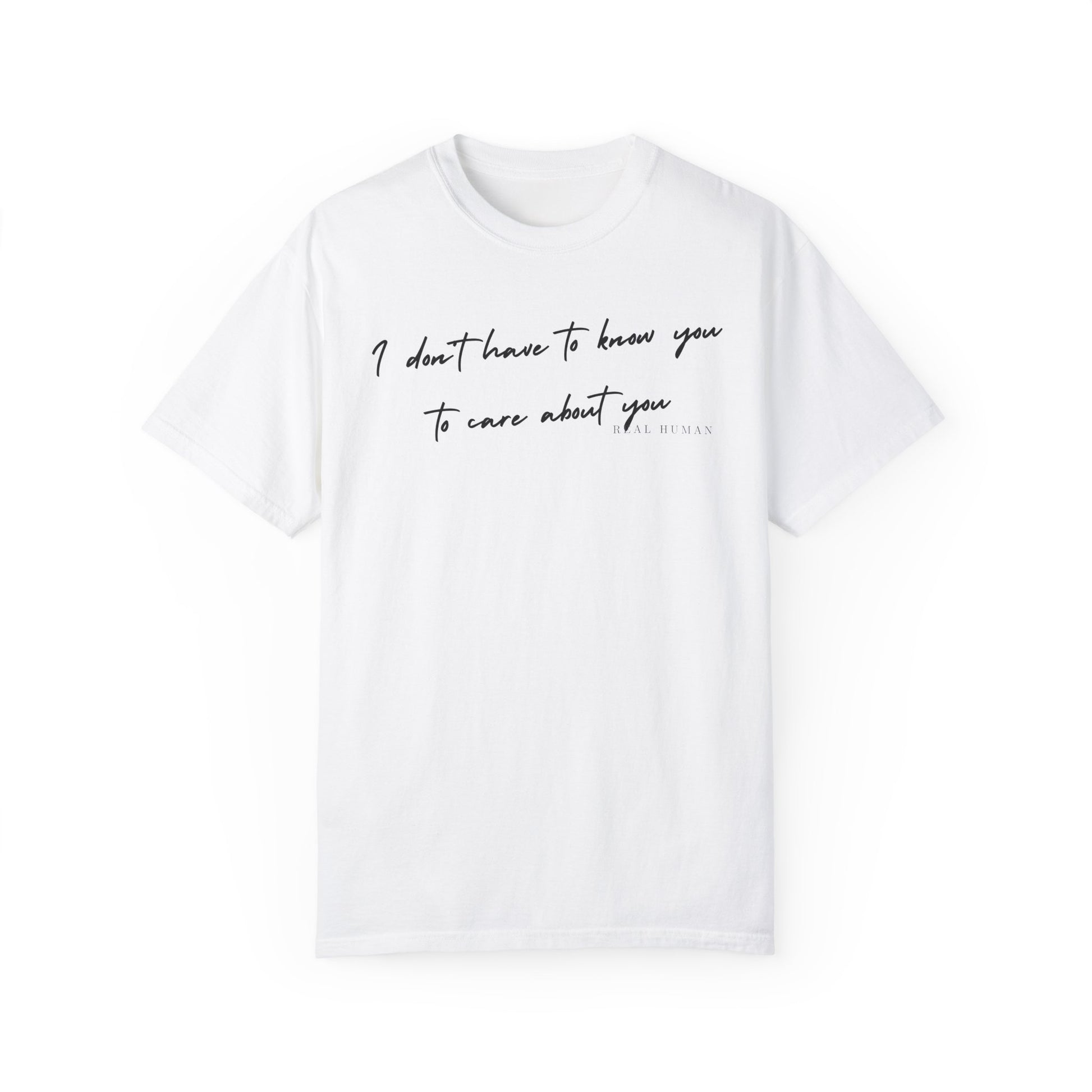With the text "I don't care about how you look; I care about how you feel" across the front, our 'Real Human' collection is designed to touch your heart and soul.